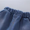 2PCS Baby Set Summer Fashion Simple Cartoon Giraffe Pattern Standing Neck Short Sleeve Denim Shorts Set