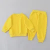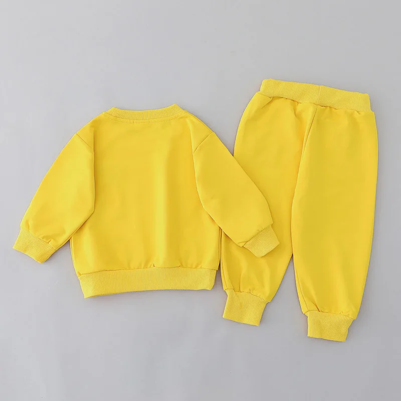 2pcs Baby Spring Fashion Simple Embroidered Bear Head Round Neck Set for Children’s Versatile Long sleeved Pants 2-piece Set