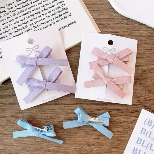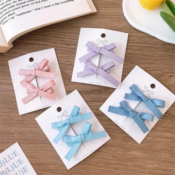 2Pcs/Set Hair Bow Clips For Girls Baby Kawii Barrettes Cute Haar Accessoires Kids Colored Ribbon Hairpins Children Hairgrip Hot