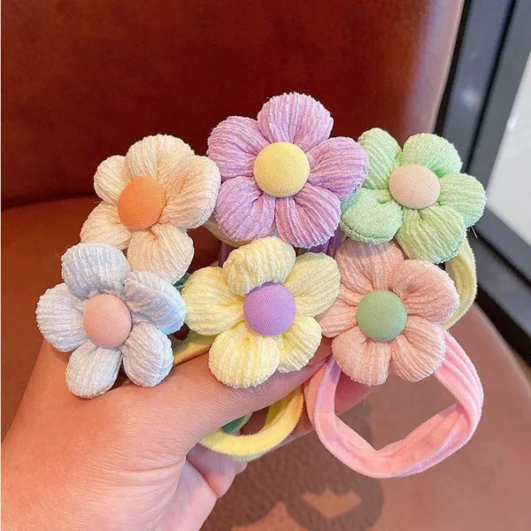 6 Pcs Flower Hair AccessoiresColorful Elestic Hair Ring Rope for Little Girls Baby Hair Small Kids Headwear