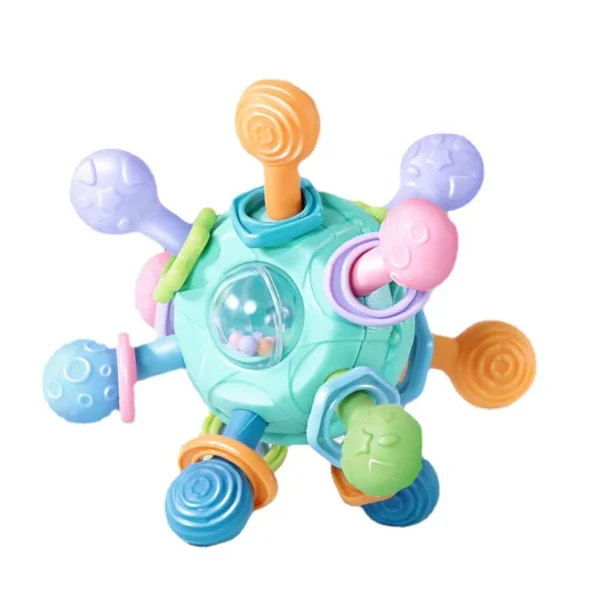 【Color Perception & Audiovisual Development】12 kinds of brightly colored balls, multi-sensory grip rattle and teether encourage grasping and reaching, with a rattle ring that slides back and forth to produce a soft rattling sound.
