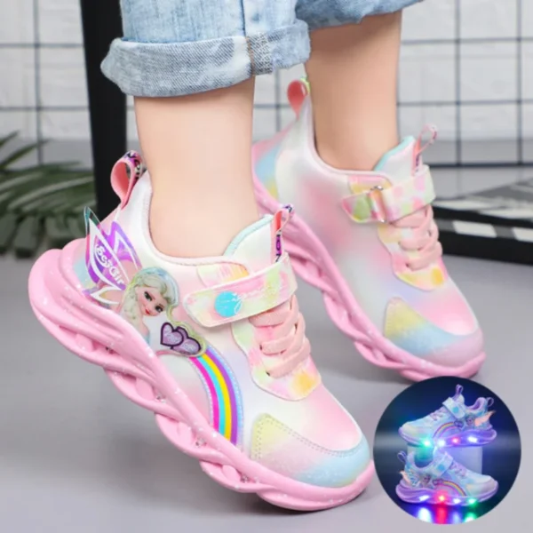 Sneakers Disney Frozen Girls Casual Shoes Up LED Light Cartoon Elsa Princess Shoes Baby Toddler Shoes Girl Present Free Shipping