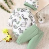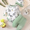 Spring And Autumn Boys And Girls Hats Round Neck Long Sleeves Animal Pattern Romper Pants Set Fashionable And Warm