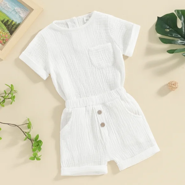 Summer Infant Baby Boys Shorts Tracksuits Sets Kids Linen Short Sleeve Crewneck Button Tops Shorts Clothing Sets Outerwear