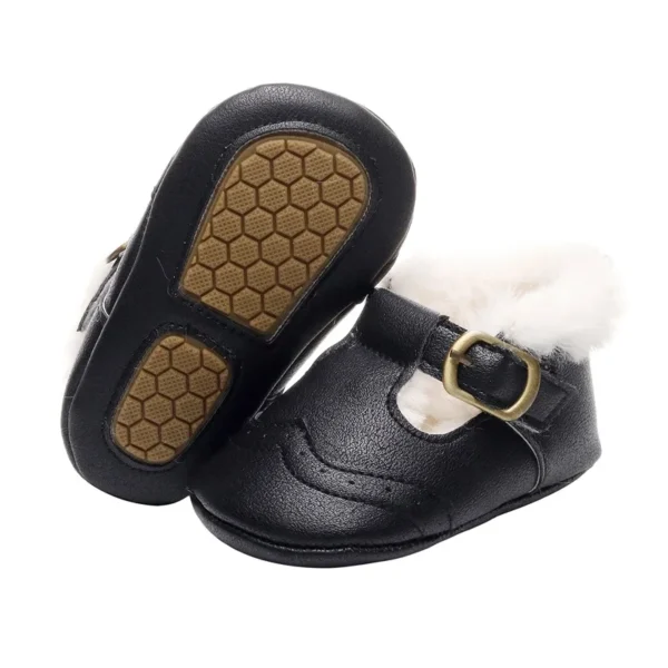 Baby Girl Princess Dress Shoes Winter Warm Mary Jane Flats Non-Slip Fleece Crib Shoes